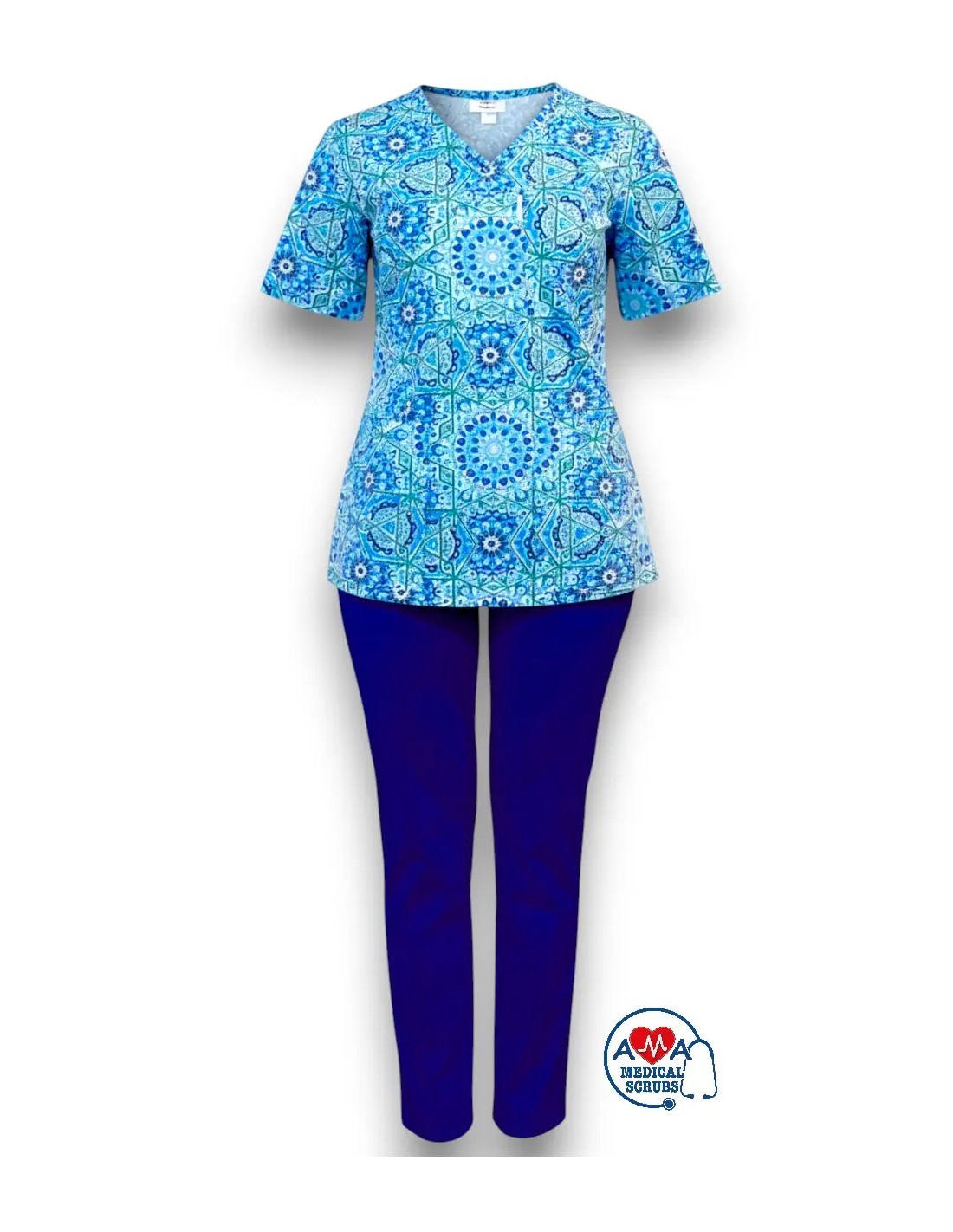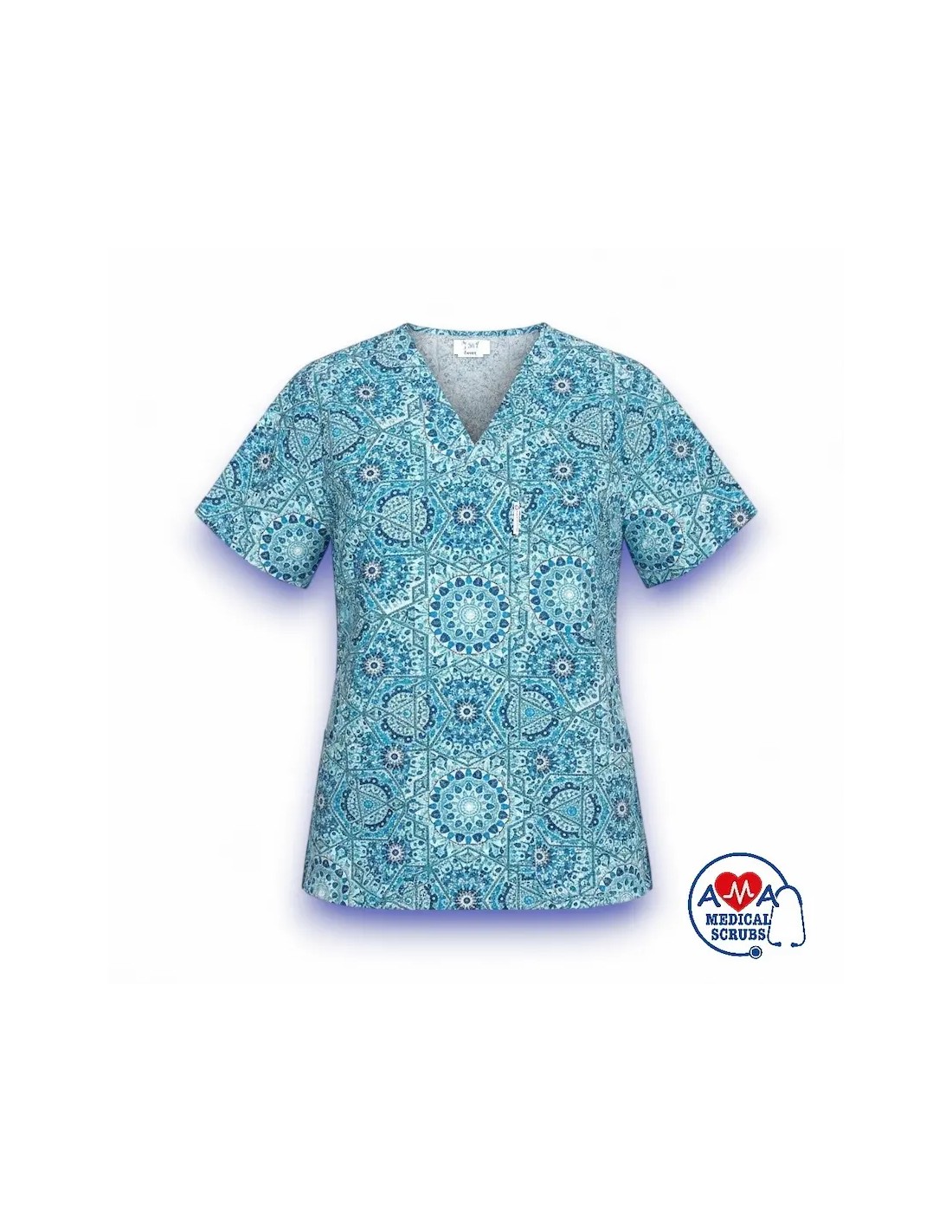 Un imprimeu sofisticat si eleganta practica se intalnesc in bluza medicala Blue India – disponibila acum pe amamedicalscrubs.ro!