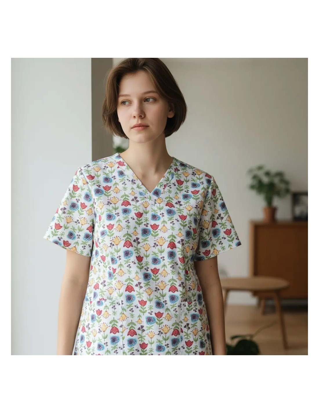 Bluza medicala bumbac imprimat Flowers | Easy-Magic Fun