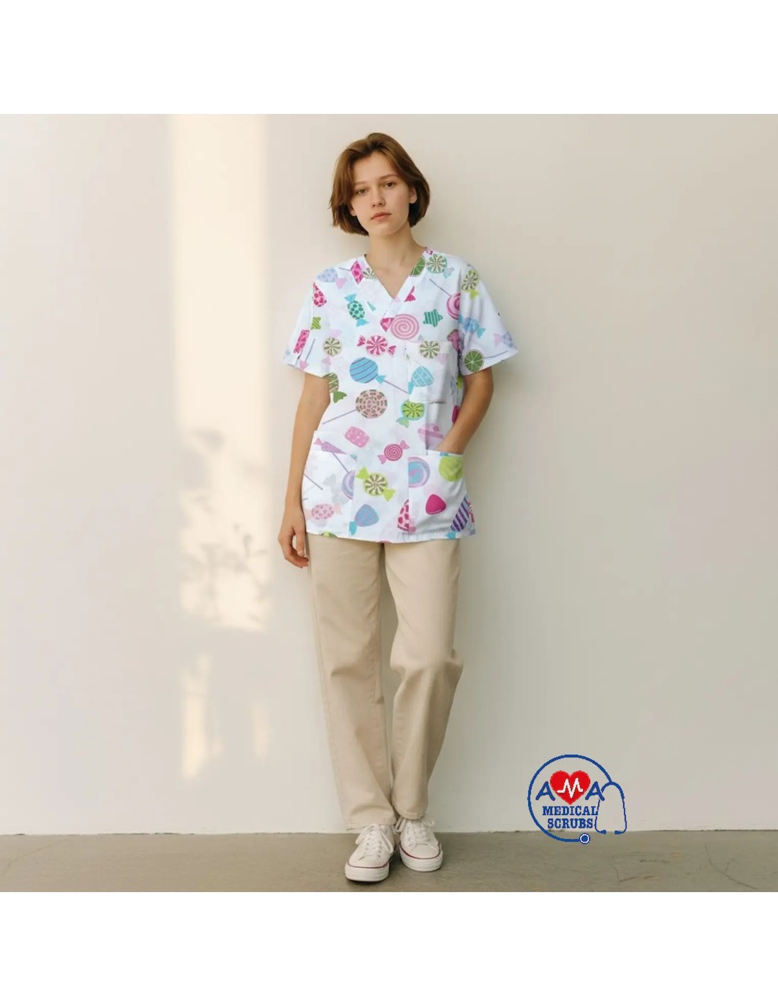 Bluza medicala bumbac imprimat Lollipops | Easy-Magic Fun