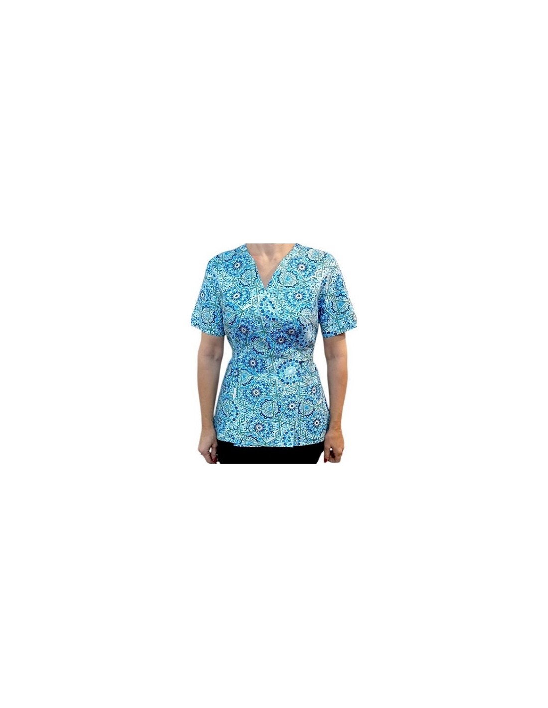 Imprimeurile bluzelor permit combinarea cu pantaloni de diferite nuante disponibili in site (categoria „Pantaloni”).