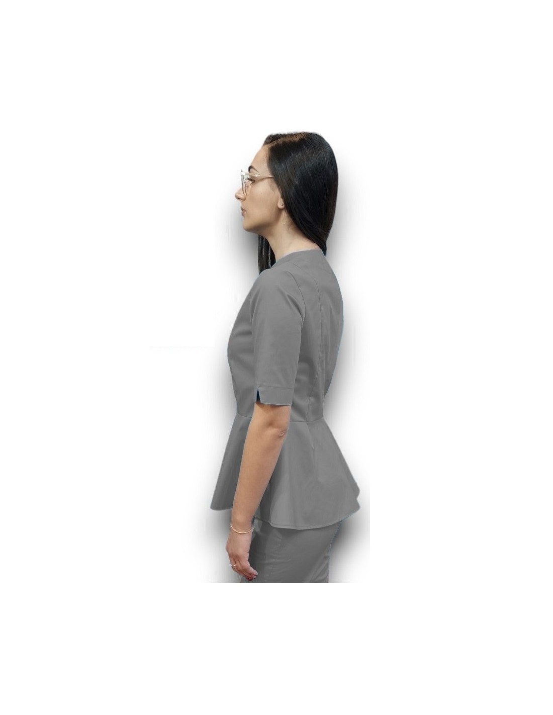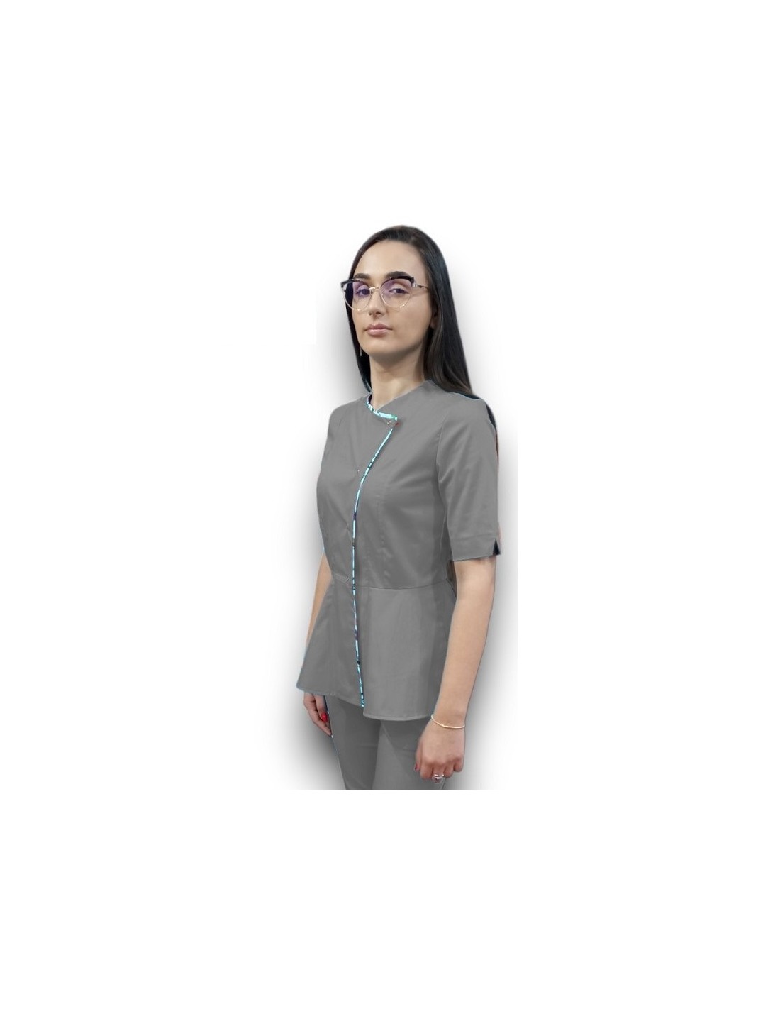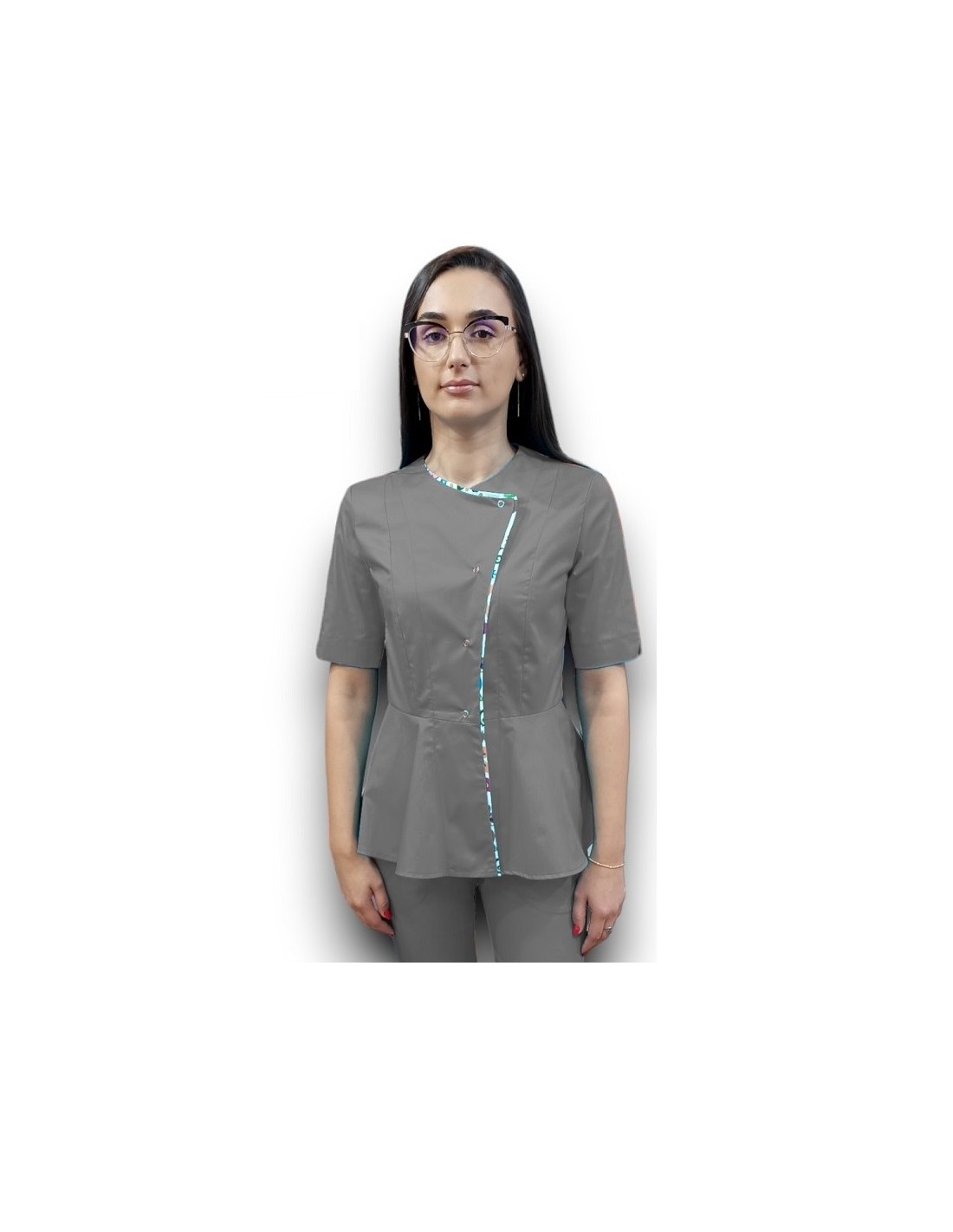 Costum medical gri petrecut basc, din tercot elastic, cu insertie florala
