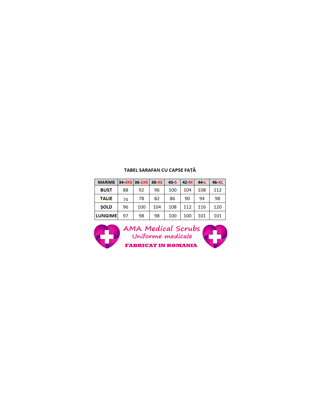 **Caracteristici suplimentare**: Sarafanul medical BREEZE-FLEX ATTRACTIVE  poate fi personalizat prin inscriptionare brodata (logo, denumire spital, nume cadru medical, titulatura, etc), respectand cerintele specifice fiecarui profesionist din domeniul medical.