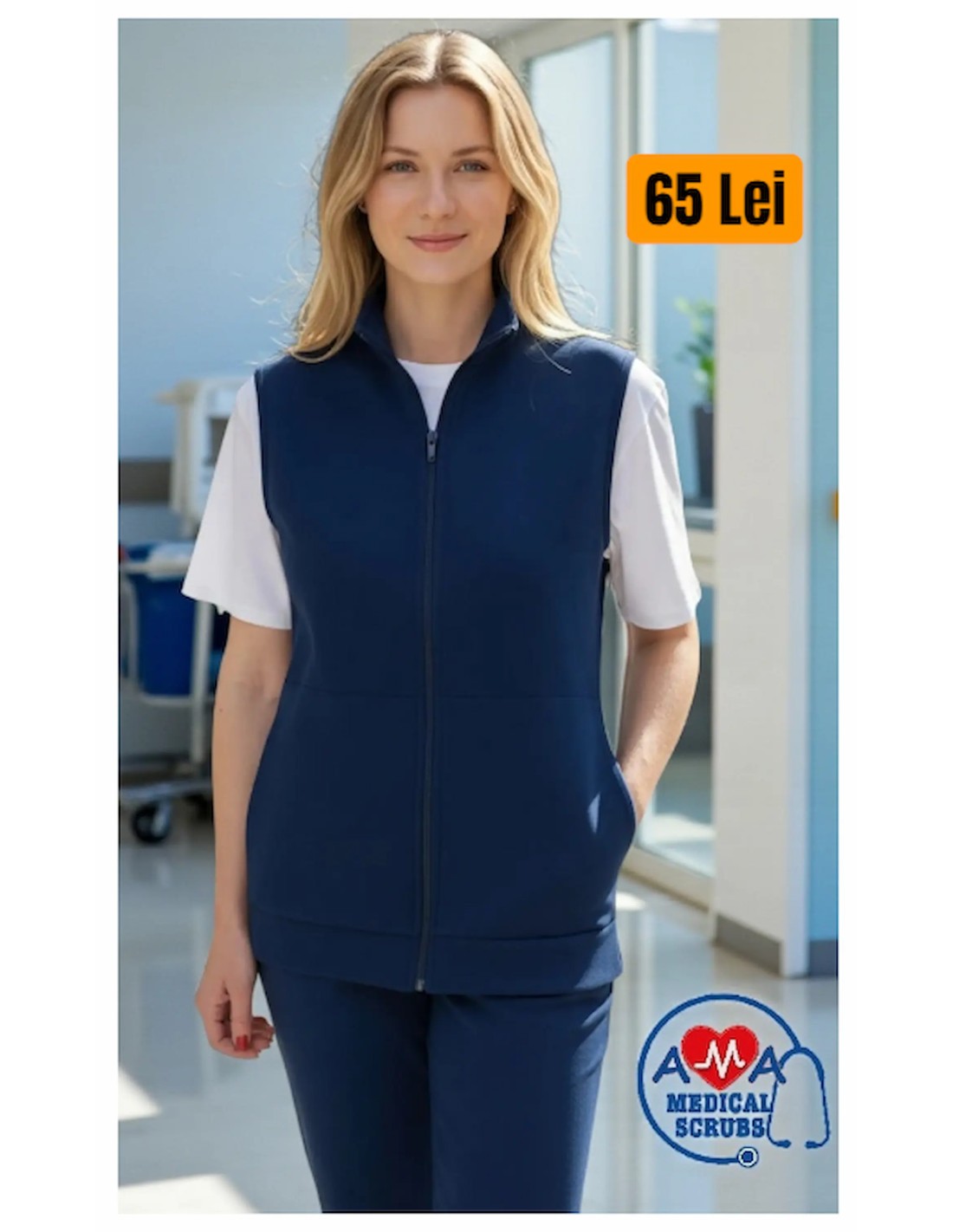 Vesta fleece bleumarin calduroasa, ideala pentru cadre medicale