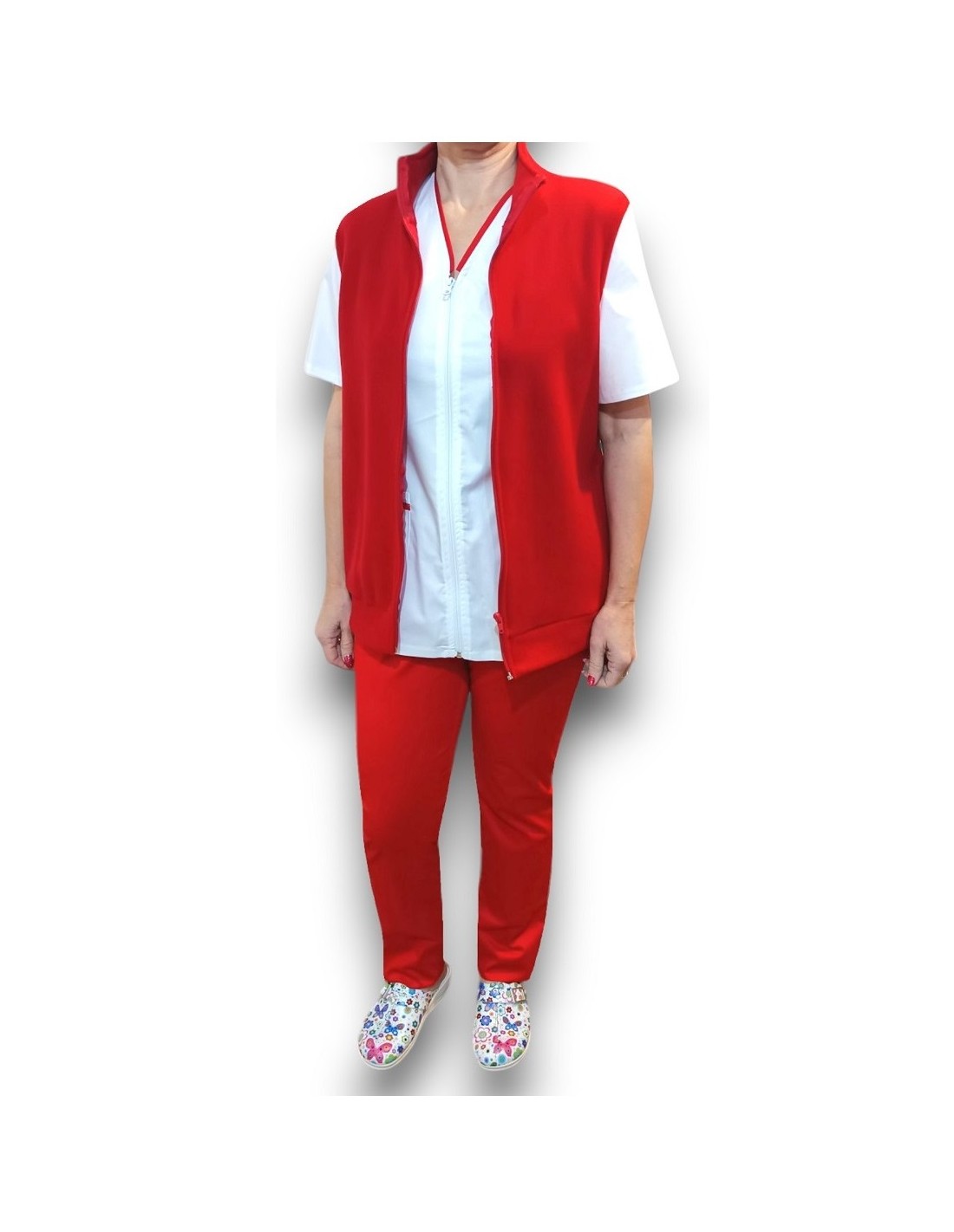 Vesta fleece rosie calduroasa, ideala pentru cadre medicale